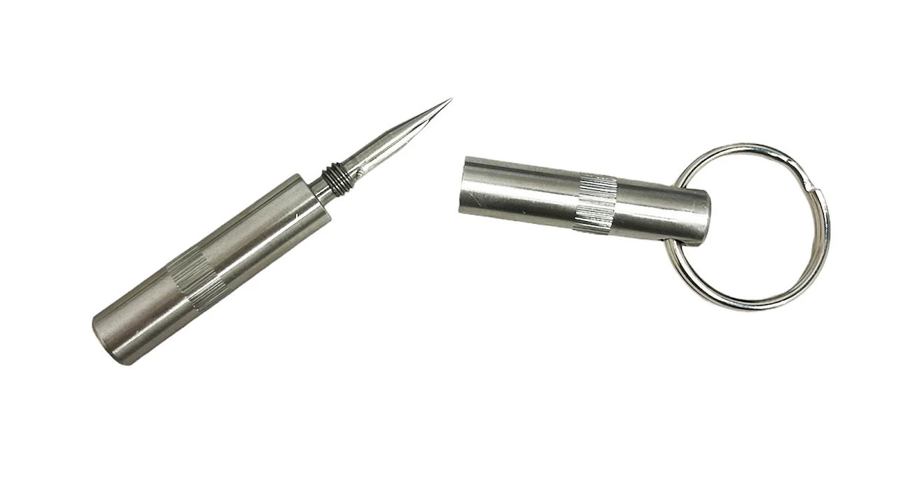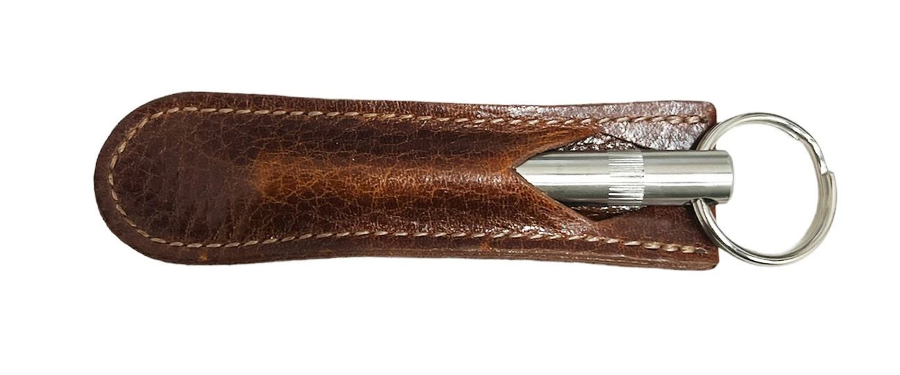 Stainless steel spear punch cutter, comes with a antique saddle leather pouch