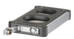 This cutter is stunning in its modern design. The dual guillotine blades have a honeycomb design on their surface giving the cutter an extremely elegant look. The gunmetal polished steel and red lines give it a cool and unique style. The sharp blades can cut up to a 60 ring gauge cigar and will always leave you satisfied with the flawless cut. The two year warranty guarantees the pristine quality of this magnificent cutter and what better gift to give to the cigar aficionado in your life? Give a gift that can be truly appreciated for years to come!