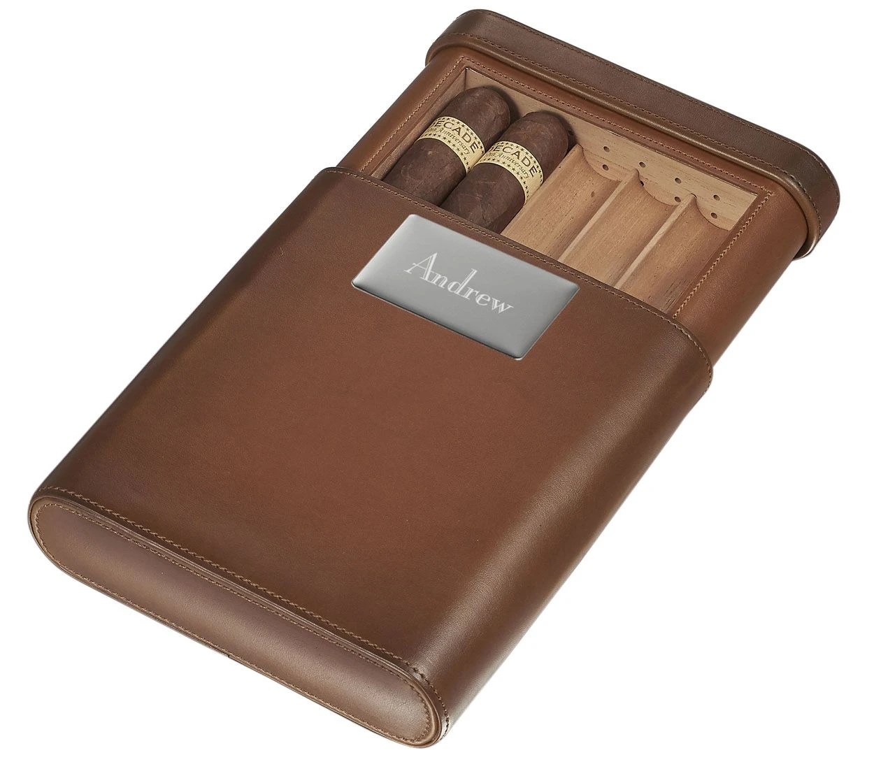 This Luxurious Travel Cigar Case is crafted from fine leather and fragrant cedar wood, perfect for maintaining your favorite cigar’s humidity and protect from any unnecessary wear and tear. The Larsen is designed to hold up to five cigars individually between wooden spacers, keeping them secure and in place for your travels Holds up to Five Cigars Height: 8.30 in Length: 6.50 in Width: 1.60 in; Weight: 1 lb 3.54 oz Genuine Brown Leather with Rich Cedar Interior Designed to Fit Conveniently Inside of Any Travel Bag or Suitcase Comes in Visol Branded Box for Easy Gift Giving; Perfect Gift for Birthdays, Fathers Day, Graduations